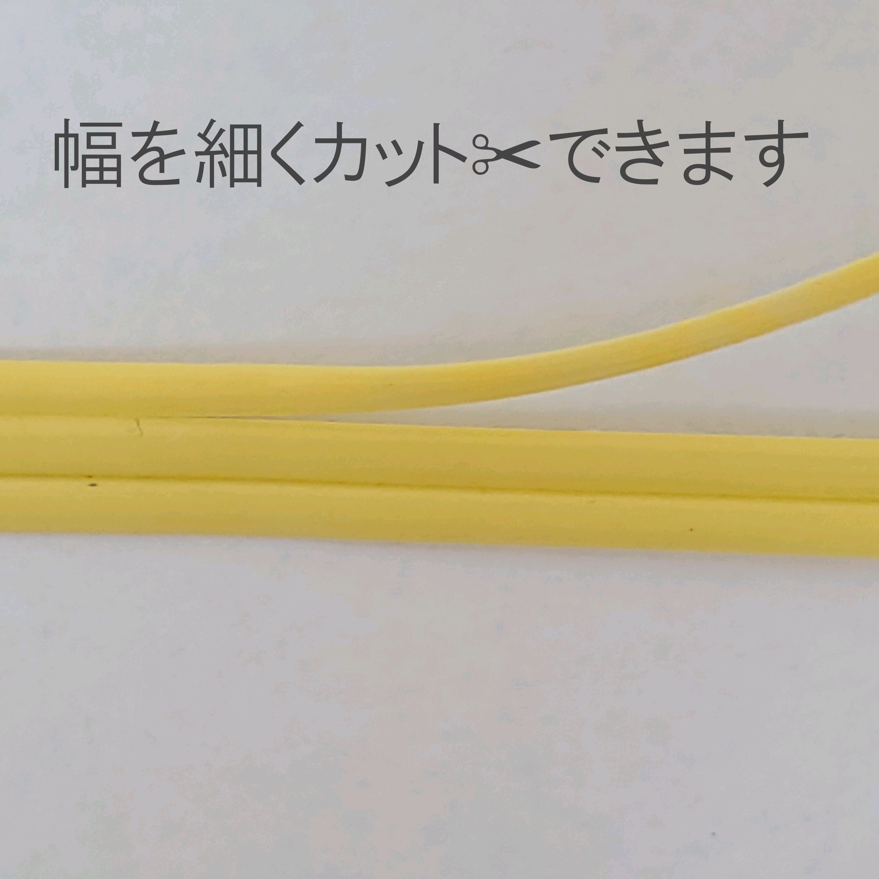 プラカゴテープ表面に3本のラインがあり、ラインに沿って切るとテープの幅を細くすることができます。お好みのテープ幅で作品を制作できます。